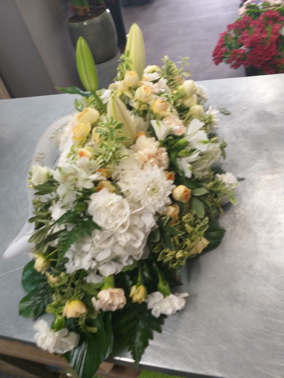 Nous réalisons toutes gerbes, coeurs, dessus de cercueils.... et compositions spéciales crémation.